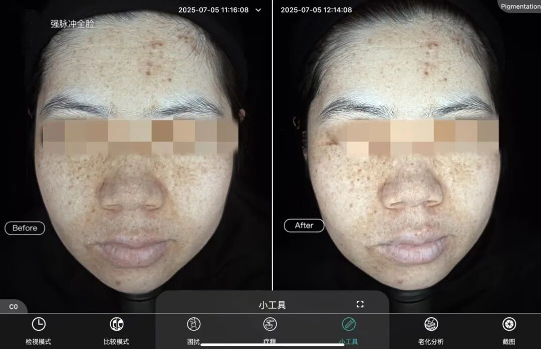 ✅保湿跟上,美白翻倍:入秋后空气干燥,强脉冲会让皮肤短暂流失水分,术后每天用医用修复面膜、保湿乳,给皮肤补足水,肤色才会更透亮,像自带“水光感”。