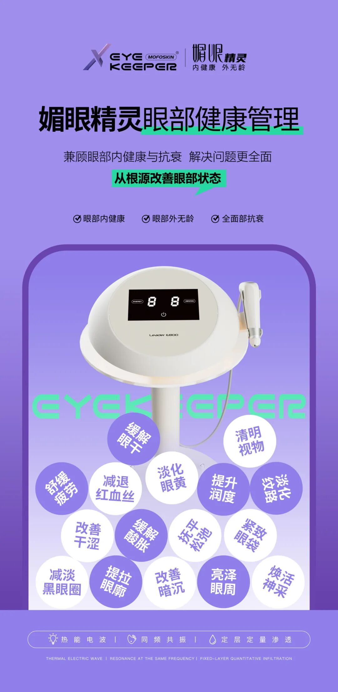 热能电波:通过温和的热能作用,促进眼周血液循环,舒缓疲劳,改善暗沉。