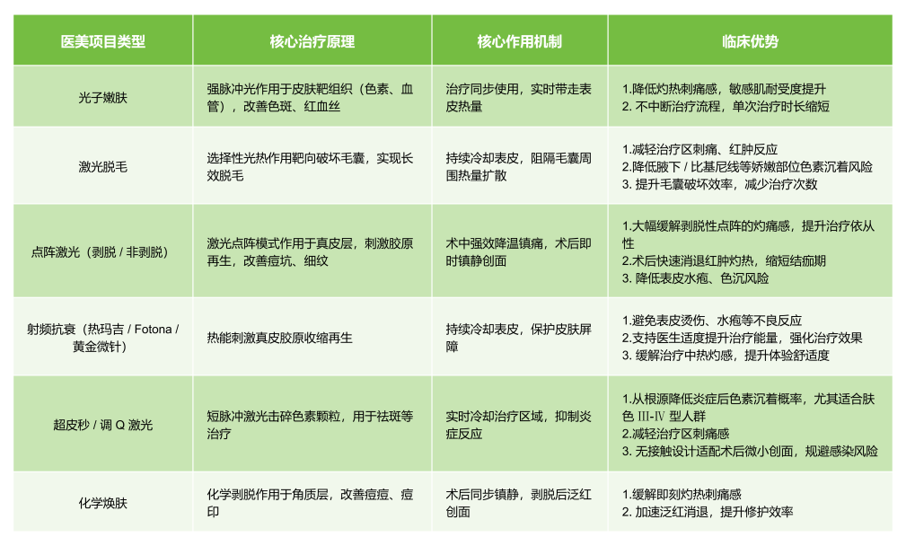 能量型项目需求人群:做点阵激光、超皮秒等较刺激项目时,冷空气治疗仪是保障安全性与舒适度的核心配置。