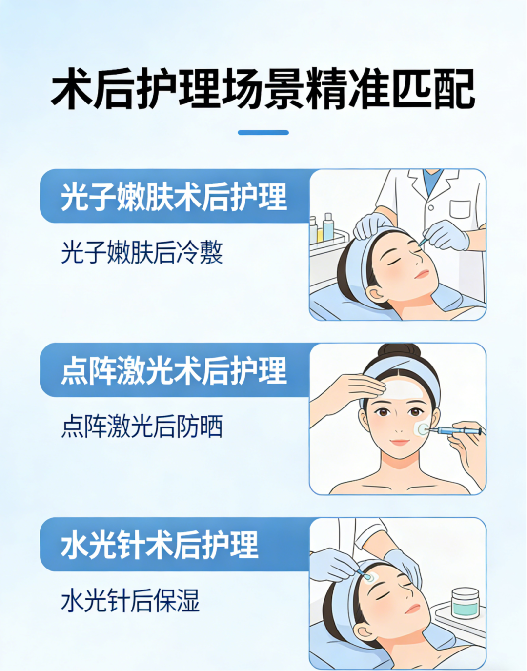 分波段精准输出,同步作用于表皮与真皮,适配光子嫩肤、点阵激光、水光针等多种项目术后护理。