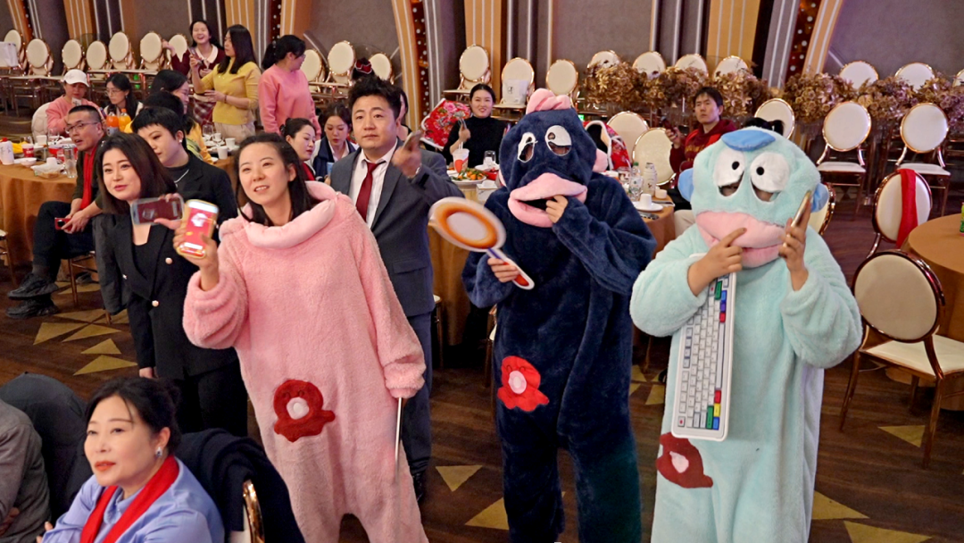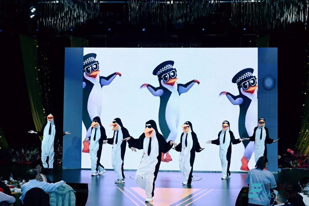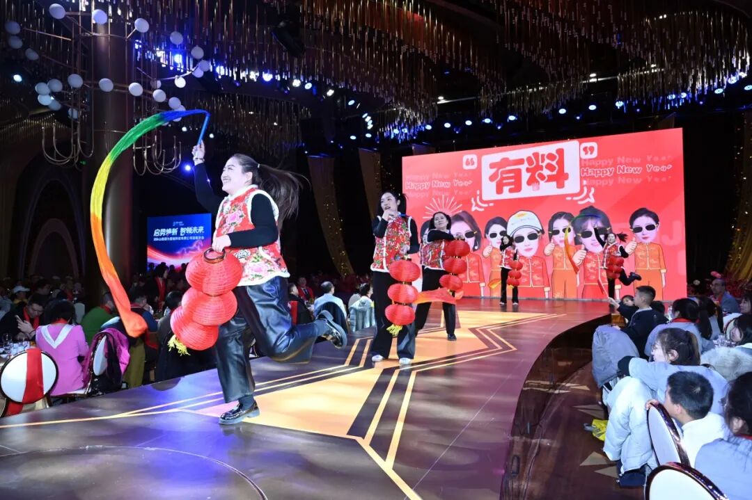 欢快喜庆的开场舞《张灯结彩》瞬间点燃现场气氛,灵动的舞步与绚烂的灯光交织,勾勒出辞旧迎新的热烈图景;经典合唱《当》以豪迈的歌声传递出团结奋进的磅礴力量;创意舞蹈《重生之我在锶为成为爱豆》将青春活力与企业文化巧妙融合,引得全场掌声雷动;小品《职场老实人》用幽默诙谐的方式演绎职场百态,让观众在欢笑中产生共鸣。
