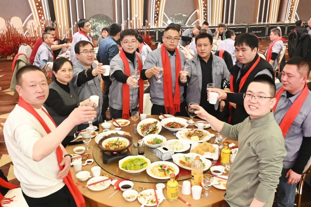 欢乐的时光总是短暂的,在全体员工的大合影和分部门合影后,晚宴正式开始。大家在推杯换盏间共叙情谊,在谈笑风生中展望未来。吉他弹唱的温柔旋律为晚宴画上浪漫句号,也为这个美好的夜晚留下了难忘的记忆。