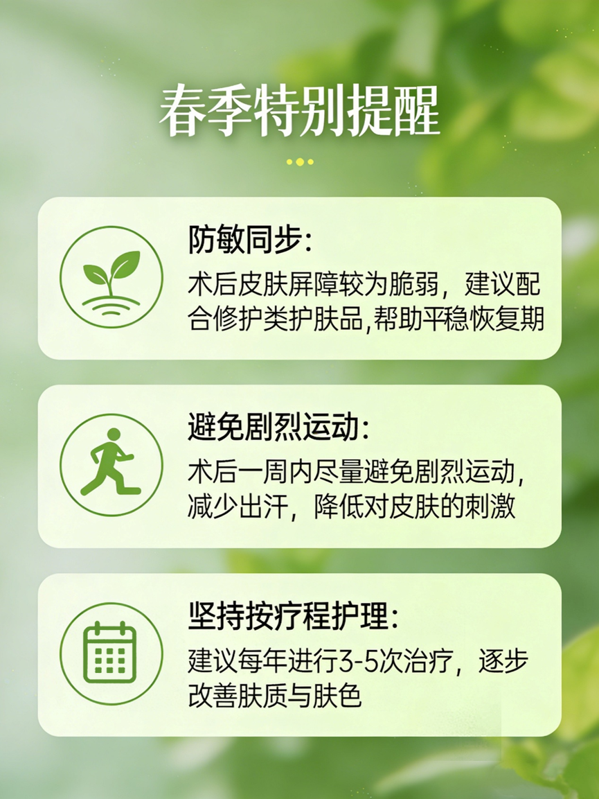 春季UV指数温和,术后做好基础防晒,能有效降低“反黑”风险。