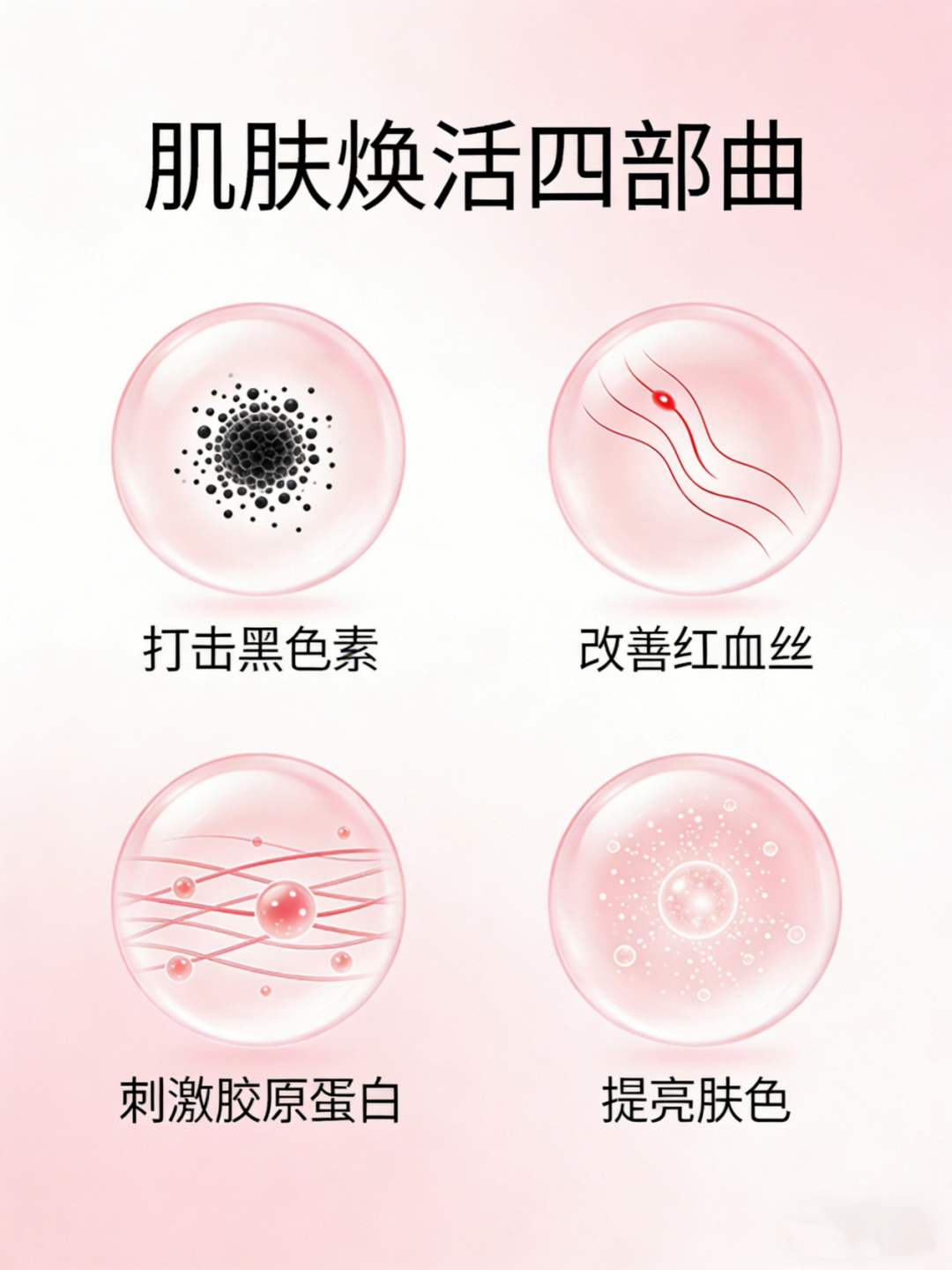 ✨ 打击黑色素:精准爆破晒斑、雀斑,从根源抑制黑色素,让皮肤透出白皙。