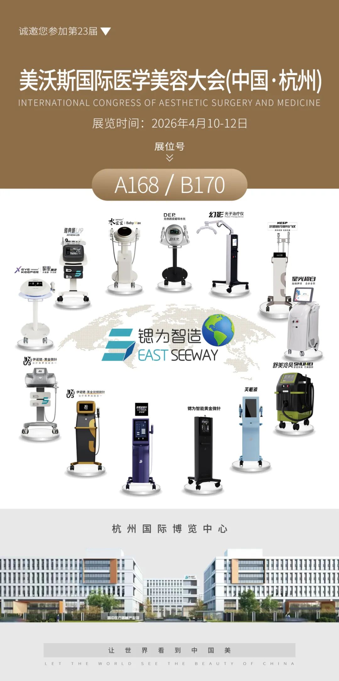 风起钱塘,美业聚首。2026 年 4 月 10 日 - 12 日,第 23 届美沃斯国际医学美容大会将重磅登陆杭州国际博览中心。