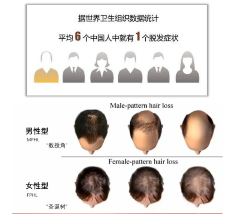 🚹 雄激素性脱发、头顶稀疏、发缝宽